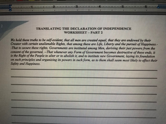 Declaration of independence in your own words worksheet