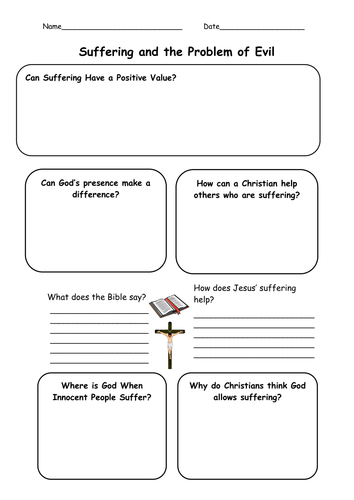 Guided Analysis Suffering Worksheet. In a guided analysis, you will interact with the problem of evil and suffering and provide your own response to the problem in comparison to the Christian response. Follow the directions in the "Guided Analysis: Suffering Worksheet." This week's main assignment is a "Suffering Worksheet."