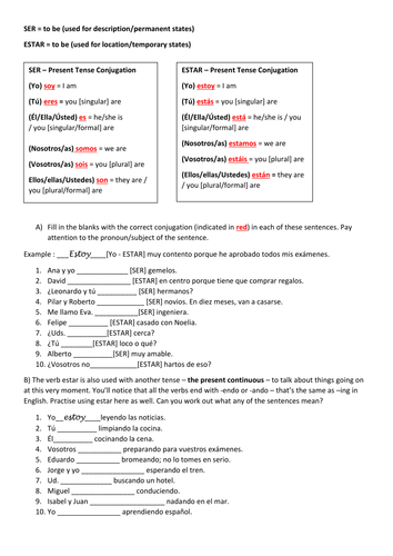 2. Ser vs estar worksheets with answer key This Spanish Ser and Estar Page is divided into 3 sections Lesson Plans PowerPoints Worksheets all Ser o estar live worksheet answer key have conversations faster, understand people when they talk fast, and other tips tested to learn faster.