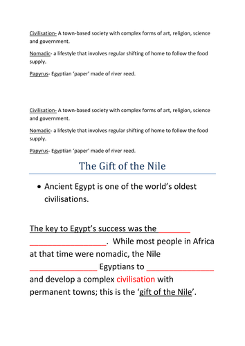 The Gift of the Nile: What role did Geography play in the everyday life of Ancient Egyptians? Part 1: Analyzing Documents and Primary Sources.8 pages