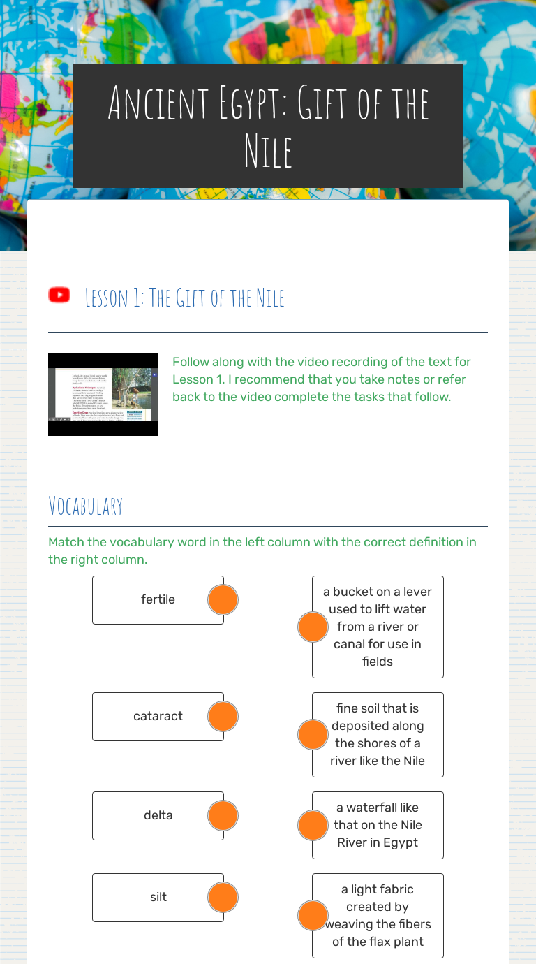 The gift of the nile worksheet