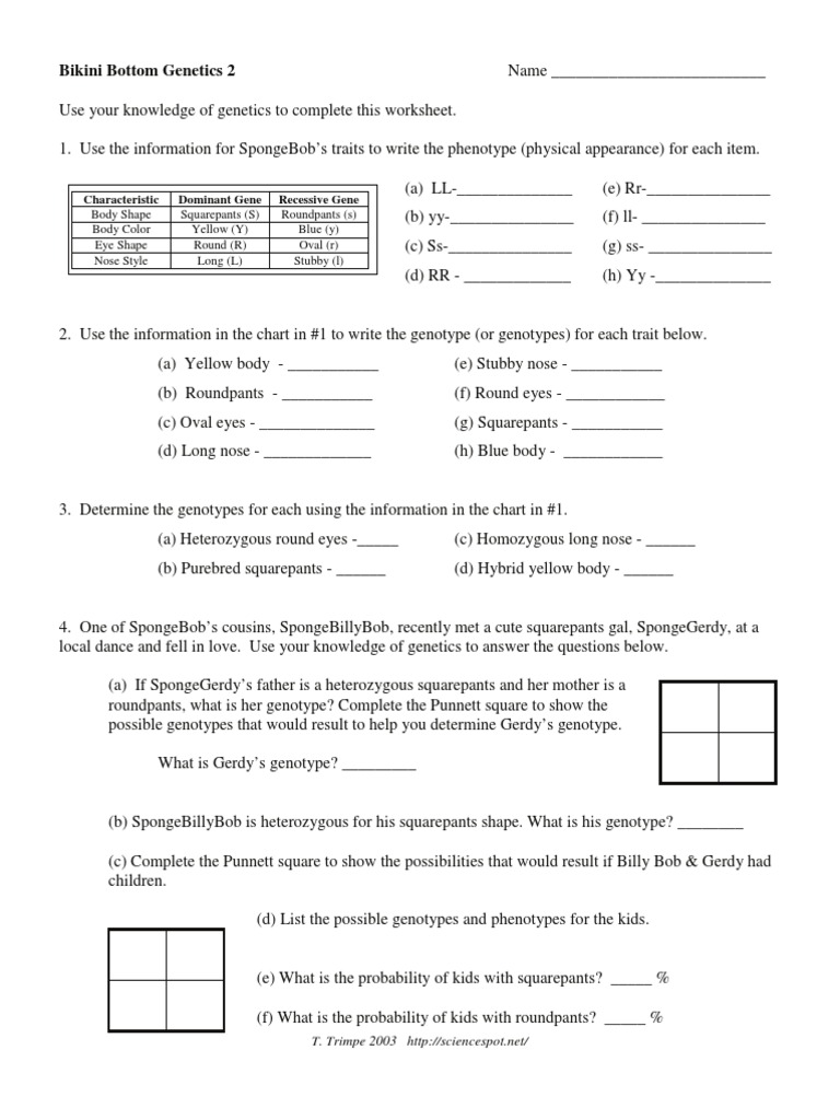 Use the information provided and your knowledge of genetics to answer each ... SpongeBob SquarePants recently met SpongeSusie Roundpants at a dance.4 pages