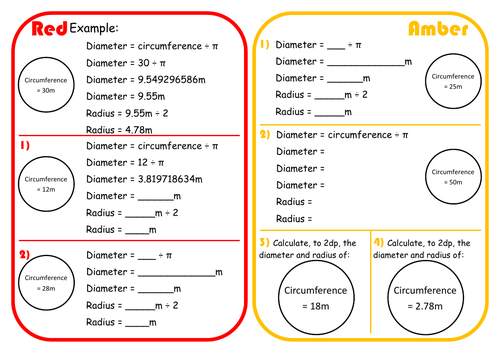 Radius and diameter worksheet.
