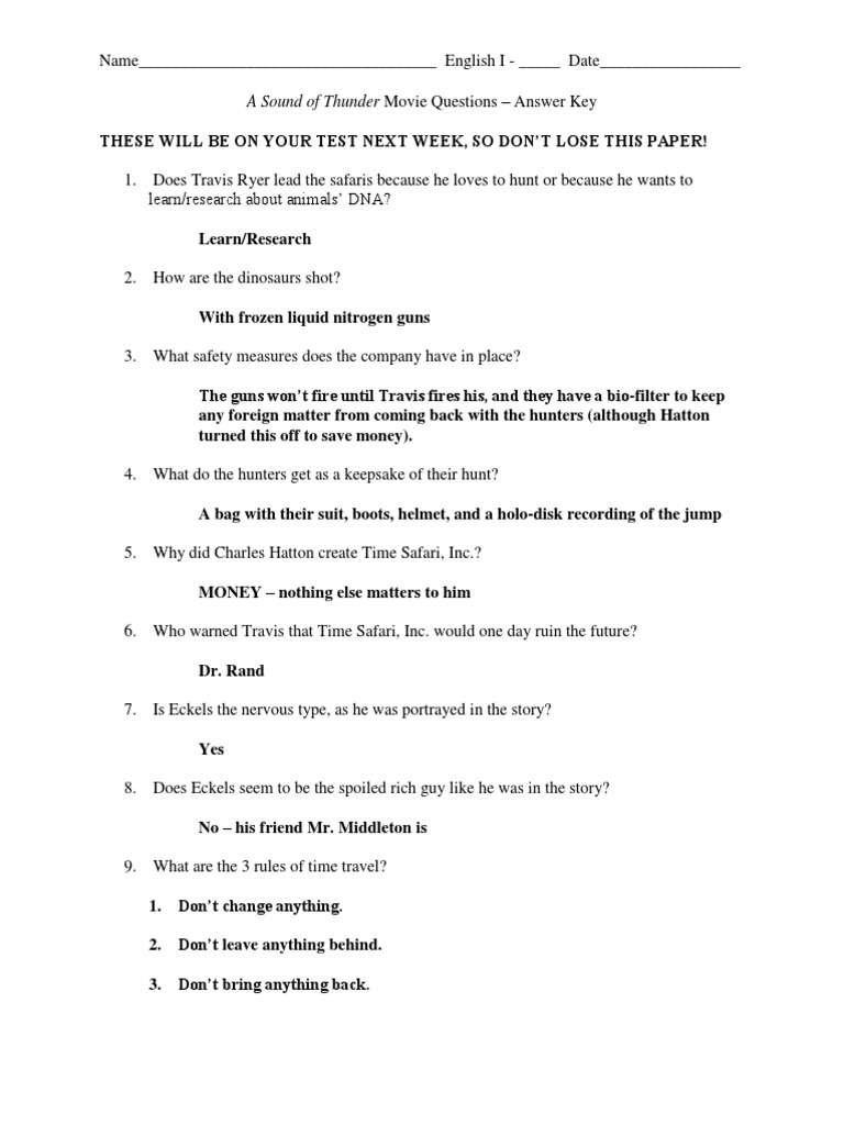 A sound of thunder worksheet answers.