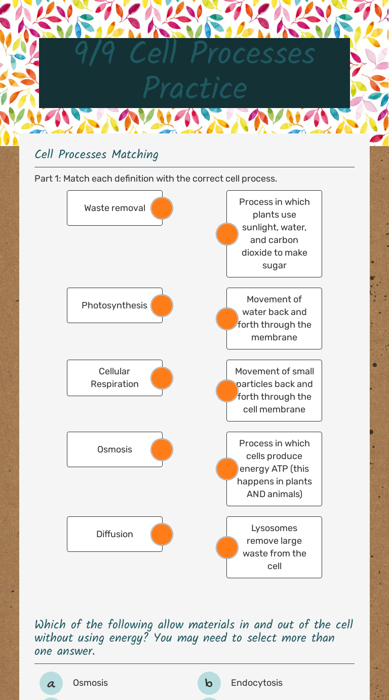 Some of the worksheets displayed are cell processes answers work cell processes questions work how well do you know your cells cell ebrate...