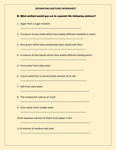 Separating mixtures worksheet with answers | teaching resources