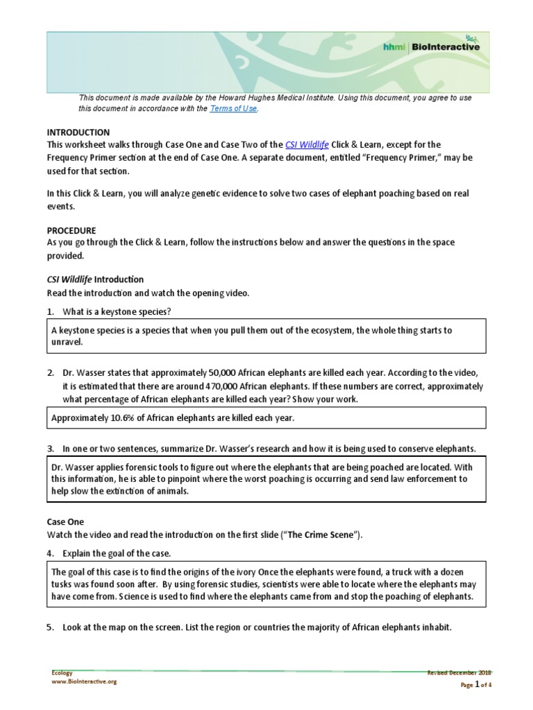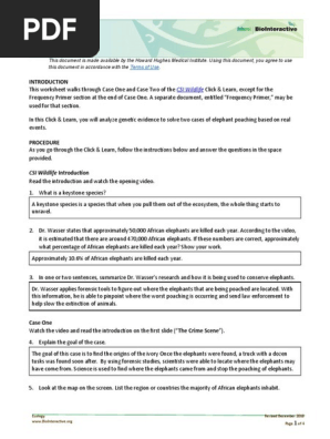 Csi wildlife biointeractive worksheet answer key 04/01/2021 saad24vbs Business & Management O-Level/A-Level $50 above ( Long Assignment) 2 Day SCIN 130 Lab 7: CSI Wildlife, Case 1 General Instructions Be sure to read the general instructions from the Lessons portion of the class prior to completing this packet.