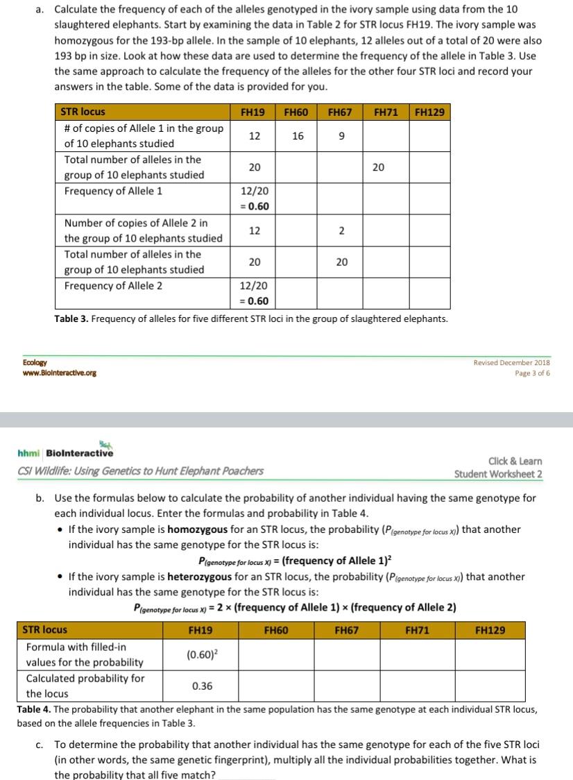 Csi wildlife using genetics to hunt elephant poachers student worksheet answers I use this chart multiple times throughout the unit for each model organism we study, like the stickleback fish, the rock pocket mouse, Galapagos finches, or Kettlewell's moths. Questions at automatic pause points, where students are asked to make evidence-based ...