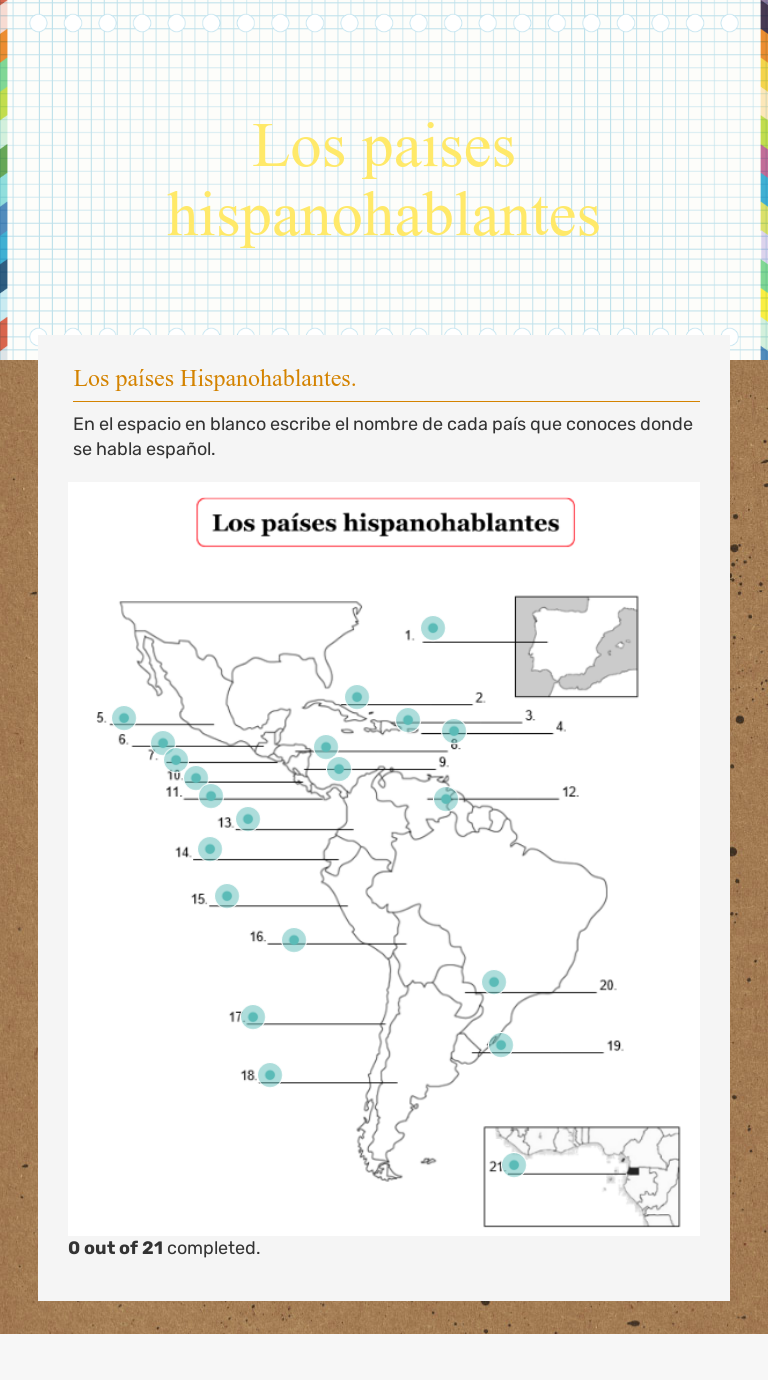 Aug 26, 2020 — Wizer.me free interactive worksheet - Los países hispanohablantes y sus capítales by teacher Alisha Dillon.