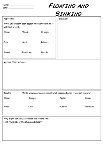 This float or sink experiment worksheet is a great way to get children thinking about what it is that makes materials float and sink. Sink Or Float Experiment Worksheet. Use the sink or float worksheet with the sink or float science project to encourage kids to make predictions perform tests and record their results. Sink or float Other contents.