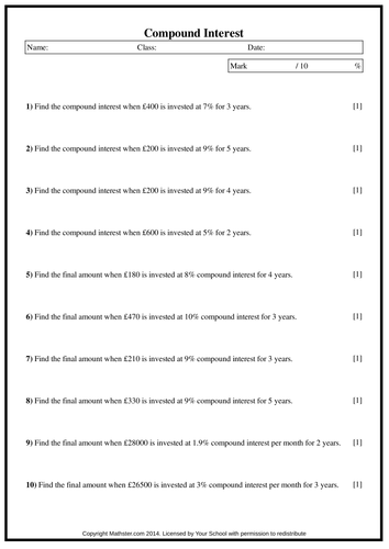 Simple interest word problem worksheets. Grade 7 and 8 math worksheets with answers. Free simple interest quizzes in google quizzes and apps for the google classroom. Free simple interest worksheets and quizzes in printables and in google apps. Simple Interest Worksheet 1 D. Russell Print the PDF: Simple Interest Worksheet No. 1 In this exercise, students will answer 10 word problems about calculating interest. These exercises will help homeschoolers learn how to calculate the rate of return on investments and illustrate how interest can accrue over time.