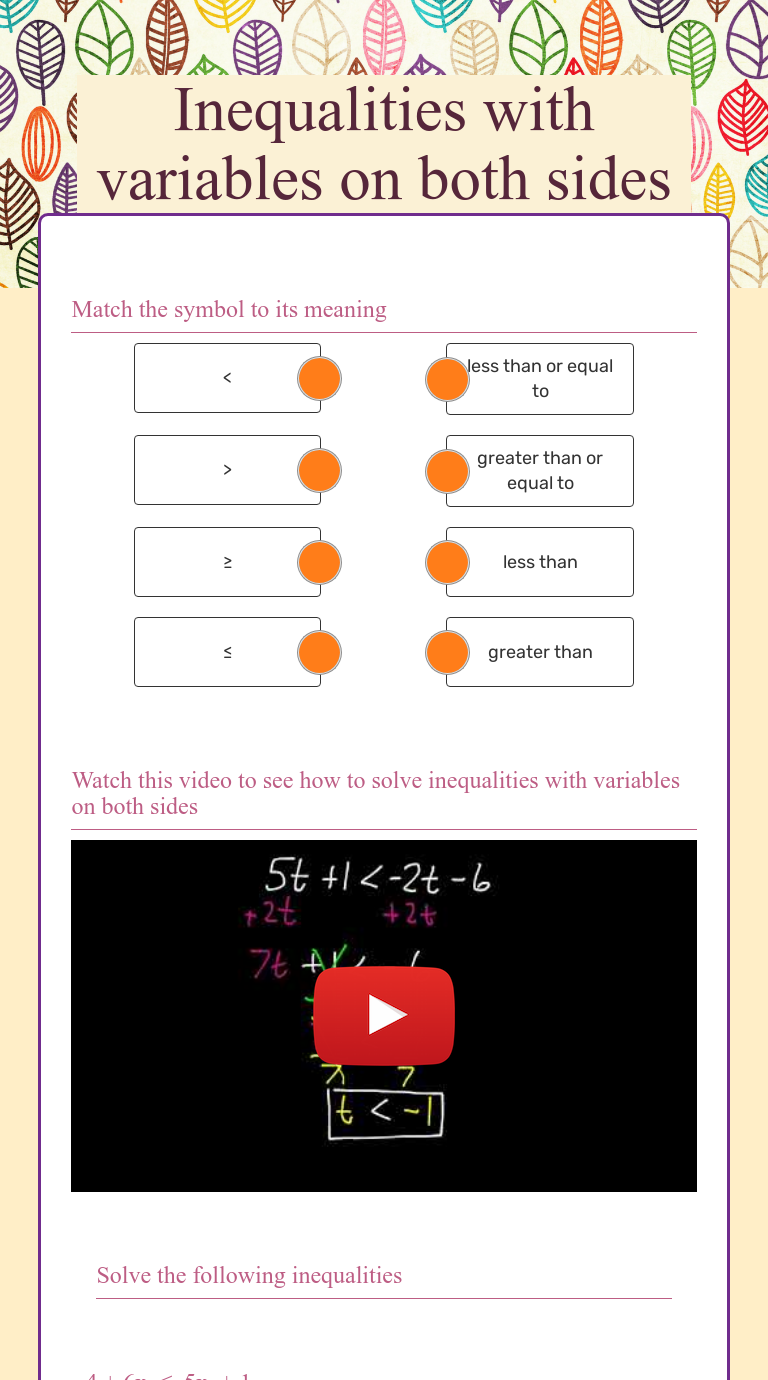 Solving inequalities with variables on both sides worksheet