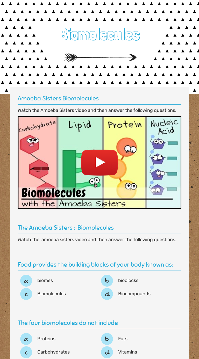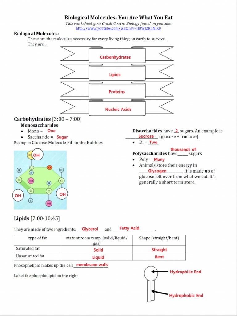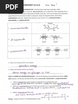 Biological molecules worksheet answer key