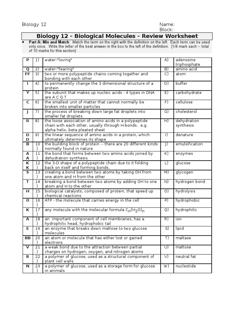 Nov 14, 2021 · Biological Molecules Worksheet Answers. Posted on. November 14, 2021. By. admin. These talks accept been accurately advised with accessory acceptance in mind. Some videos were recorded in antecedent bookish years so may accommodate advance agreeable and admission requirements that aren’t accordant for your year of interest. Created Date: 3/20/2018 11:11:09 AM