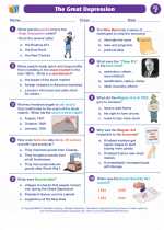 The Great Depression Worksheets Print The Great Depression Worksheets Click the buttons to print each worksheet and associated answer key. The Problem Reading Passage At the start of the Great Depression, Herbert Hoover was president, and many people blamed him for what happened. The Problem - Multiple Choice Questions