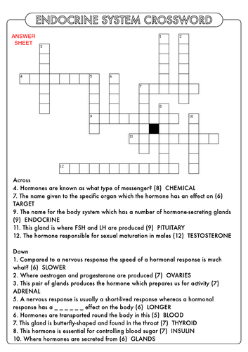 The Endocrine System Facts, Worksheets, Glands, Diseases... Endocrine System Worksheets. Complete List Of Included Worksheets. The endocrine system consists of all the glands in the human body responsible for producing hormones that regulate bodily functions such as growth, metabolism, reproduction, and mood.