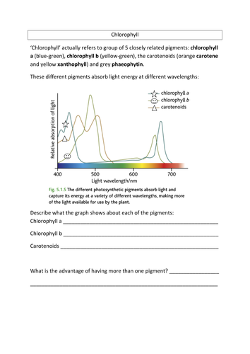 The absorption of chlorophyll worksheet answers