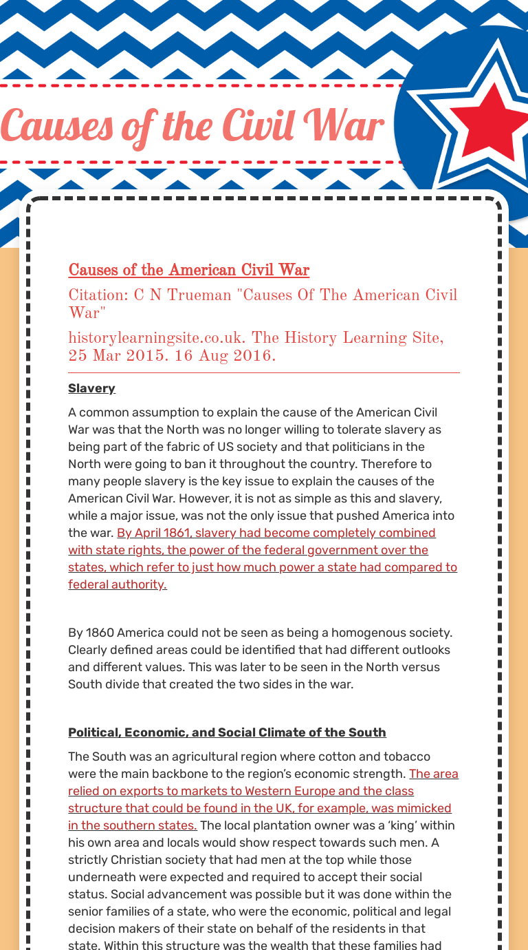 Civil war causes worksheet answer key
