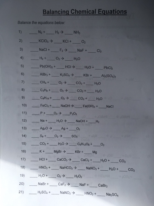 Identifying and balancing chemical equations worksheet answers