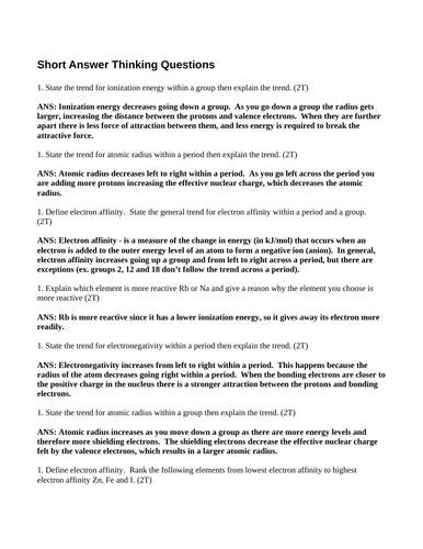Periodic trends practice worksheet answers