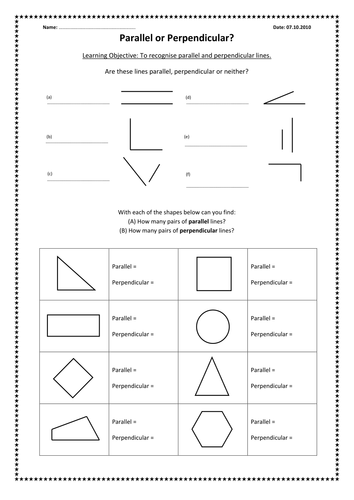 Awesome Parallel And Perpendicular Worksheets | Alisha ... These worksheets will produce 10 problems per page. Containing 6 worksheets on parallel and perpendicular lines for KS2 this pack starts with simple worksheets which ask pupils to circle the examples of parallel or perpendicular lines. Ad Download over 30000 K-8 worksheets covering math reading social studies and more.