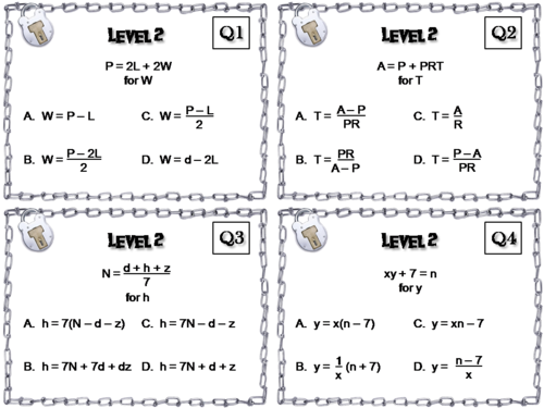 Solving Literal Equations Worksheet | Teachers Pay Teachers Assess your math students' proficiency in solving multistep equations, including solving literal equations and word problems. There are 20 cards in total. The answers are included. ***Now there's a digital version and a hybrid print/digital version.Suggested use of task cards: Print one set of task