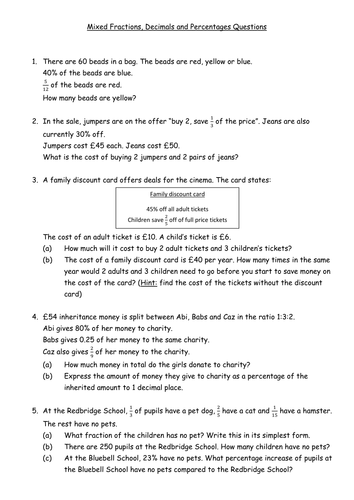 Fraction, decimal and percentage word problems worksheet Fraction, decimal and percentage word problems adding, subtracting of decimals and finding percentage