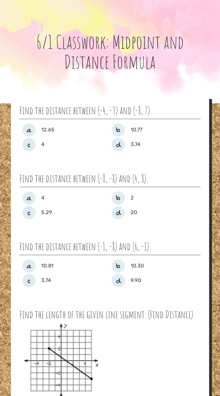 Distance And Midpoint Worksheet Distance And Midpoint Worksheet. When the filter is cleared, all of the information will once once more seem in the spreadsheet. The first step of studying Midpoint And Distance Worksheet - gartnerlee.com Attractive Midpoint And Distance Worksheet - Instead of copying and pasting the information, you need to use the drag and drop option to maneuver cell content material from one cell to another. Once accomplished, launch the cursor, and the desired cell range would be selected. Click on the first cell from which to begin the choice.