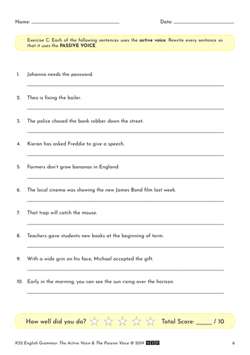 Active voice vs passive voice worksheet