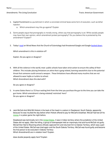Creating a constitution worksheet answers The articles of the constitution worksheets answer Outlining The Constitution Worksheet Answers The Articles of the Constitution Worksheets It also explores the meaning of the Constitution as a living document and Worksheet - Constitution - Worksheet Match the following principles with the... The Living Constitution Worksheet Answers — excelguider.com Purposes of the The Living Constitution Worksheet Answers. The best way to Writing a The Living Constitution Worksheet Answers. To begin with divide the mandatory topic into smaller, easily manageable parts (instead of taking an entirely unit you can also take lessons. Constitution Worksheet Answers - PREAMBLE 1 What are the... The U S Constitution. Rio Hondo College • POLISCI 110. Student's Copy Final Exam (8-14) Dye 17th ed.docx. The Constitution of the United States of America - Copy.pdf.