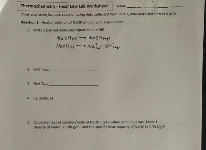 AP1 Lab Manual_Answers - HSCI.1030 - Human Anatomy and ... Lizard Evolution Virtual Lab Student Worksheet 1-1; Tina jones comprehensive questions to ask; Mark k yellow book - Mark K ; ATI pharmacology proctored ATI 2019; Cell Division SE - bio; A Gentle Reminder by Bianca Sparacino (z; HHMI Cell Cycle and Cancer Overview Worksheet; Simple Pendulum lab report; Give Me Liberty Chapter 17 Notes; Newest. ASTR 114 Course … Solved Name: Thermochemistry Worksheet 1. List... | Chegg.com Chemistry questions and answers. Name: Thermochemistry Worksheet 1. List several useful equations from this chapter: 2. Which has the We review their content and use your feedback to keep the quality high. Transcribed image text : Name: Thermochemistry Worksheet 1. List several useful...
