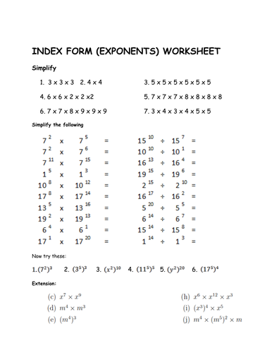 PDF Exponents Worksheet & Practice © 2007 mathwarehouse Overview This exponents worksheet focuses on two of the main rules for exponents and asks students to apply both of these rules (see below) to various types of problems. Exponent rule 1 : multiplying exponents i.e. xx a• b =x ab+