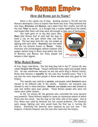 Ancient Rome Worksheets - English Worksheets Land The Roman Empire started when Ceasar Agustus took the power and became the emperor. The lower government was the same but the higher power was given to the emperor. A split of the empire happened when it was becoming difficult to happen in the entire empire from one city. The Western Roman Empire had Rome as its capital.