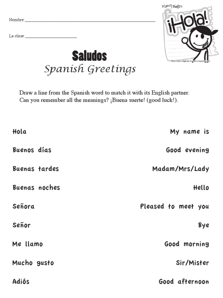 Worksheet On Spanish Greetings | Printable Worksheets and Activities for Teachers, Parents ...