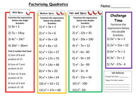 Factorising Quadratics Worksheets | Questions and Revision ... Factorising Quadratics. Quadratics are algebraic expressions that include the term, x^2, in the general form,. ax^2 + bx + c. Where a, b, and c are all numbers. We’ve seen already seen factorising into single brackets, but this time we will be factorising quadratics into double brackets. (nx+m)(px+q) There are 2 main types of quadratics you will need to be able to …