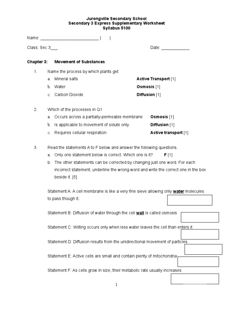 Diffusion Osmosis And Active Transport Worksheet Answers ? - sonar.ptotoday diffusion-osmosis-and-active-transport-worksheet-answers 11/18 Downloaded from sonar.ptotoday.com on June 4, 2022 by guest is somewhere on a path toward expertise in a content area. This resource promotes a model for developing high-quality curriculum that moves learners along the continuum toward expertise and provides sample units and rubrics ... Osmosis_Answer_Document.docx - Osmosis Answer Document You may type ... Osmosis Answer Document You may type your answers to the osmosis practice sheet on this document. 1. Cell H2O – 90% Beaker H2O – 85% Tonicity description and water movement below. Cell Solute – 10% Beaker Solute – 15% The beaker is hypertonic and the cell is hypotonic. The water will flow out of the cell. 2.