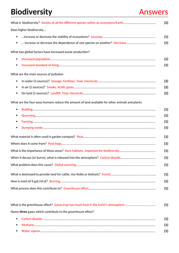 Ecology review worksheet #1 answers