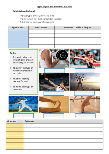 Joints and movement worksheet answers