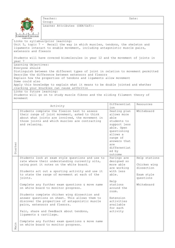 43 joints and movement worksheet answers