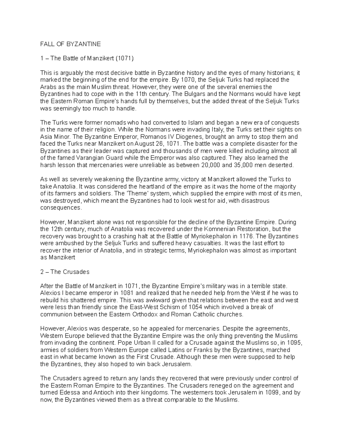 The_Byzantines_Engineering_an_empire finished.docx - The... The Byzantine Empire was the dominant force in theDark Ages. 3. Hi, I'm Peter Weller. Byzantium was an ancient Greek city state founded around 600 BC named after its king Byzants. 4. November 8, 324 AD, after two decades of bloody civil war, the emperor Constantine finally seized sole control of the entire Roman Empire. Empire . 2 .