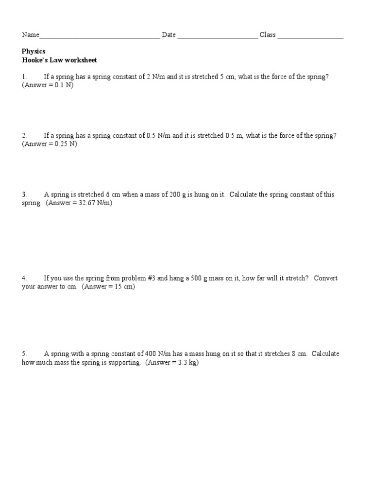 Hooke's Law Worksheet | PDF | Mass | Building Engineering - Scribd Hooke's Law Worksheet - Free download as Word Doc (.doc), PDF File (.pdf), Text File (.txt) or read online for free. worksheet for o level physics