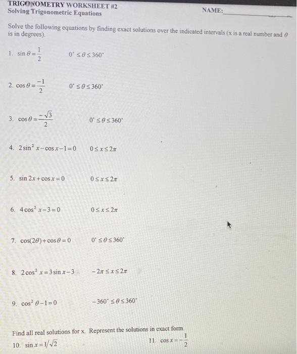 38 solve trigonometric equations worksheet