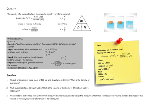 Calculating Density Worksheets With Answers Teaching Resources | TpT These printable worksheets cover calculating density from mass and volume, calculating mass from density and volume, and calculating volume from density and mass. Students learn to use the formula D=M/V, M=DV, and V=M/D.These popular Skills Practice worksheets help your students master all the density calculations.