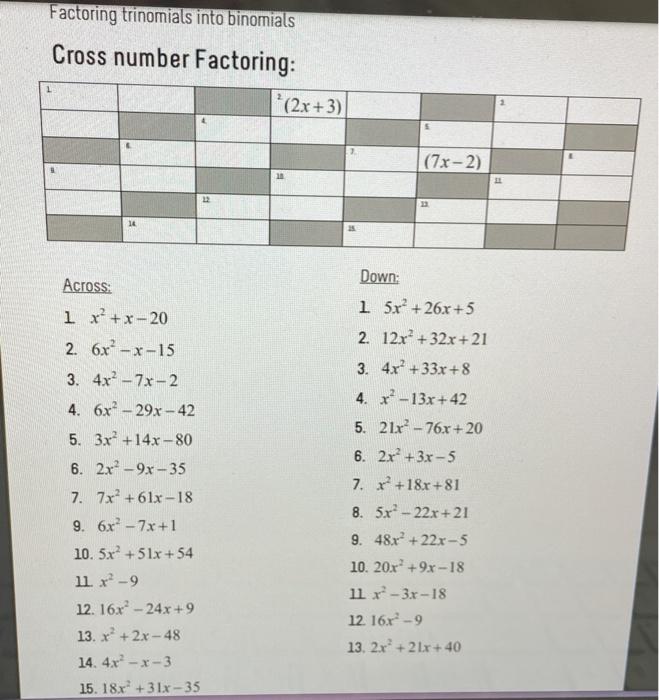 Factoring trinomials worksheet a 1. Factoring Using Master Product - factoring polynomials identify the keyword that you are looking (i.e. Factoring Using Master Product) in the table below Click on the appropriate software demo button found in the same line as your search phrase If you find the software demonstration useful click on the buy button to obtain the program at a special price extended to factoring-polynomials.com visitors Worksheet on Factoring Trinomials | Factoring Trinomials … Jan 15, 2021 · Take the help of Worksheet on Factoring Trinomials and practice well for the exam. It’s really easy for all the students to score good marks in the exam if they practice with Factoring Trinomials Worksheets. Allot your time to practice all problems available on the Factoring Trinomials Practice Worksheets to improve your subject knowledge. Algebra Help - Calculators, Lessons, and Worksheets - Wyzant Lessons Factoring A Difference Between Two Squares Lessons. Factoring a Difference Between Two Squares Worksheet; Factoring A GCF From an Expression Lesson. Factoring a GCF From an Expression Worksheet; Factoring a Trinomial Lessons. Factoring a Trinomial Worksheet; Factoring Completely Lessons. Factoring Completely Worksheet; Factoring Numbers Lessons Factoring Trinomials (a = 1) Date Period - Kuta Software ©1 t2t0 w1v2 Y PKOuct 4aN IS po 9fbt ywGaZr 2eh 3L DLNCR.v Y gAhlcll XrBiug GhWtdsd Frle Zsve pr7v Qexd C.p v dMnaMdfev lw TiSt1h t HIbnZf difngikt le O sAOl1g fe Gb8r6a e Q1Y.M Worksheet by Kuta Software LLC Kuta Software - Infinite Algebra 1 Name_____ Factoring Trinomials (a = 1) Date_____ Period____