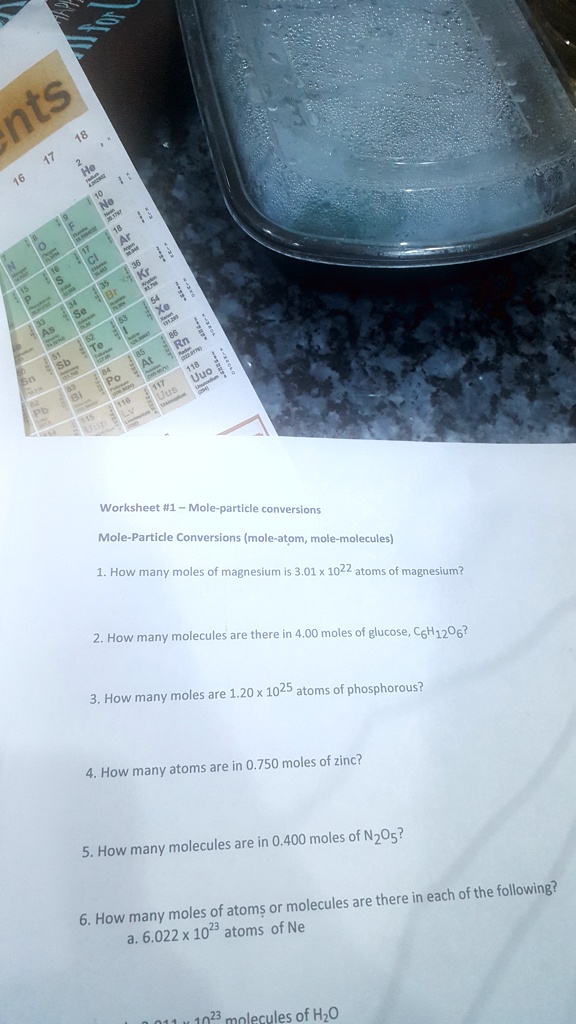 Moles molecules and grams worksheet. Freezing and Boiling Points - CliffsNotes When calculating the change in freezing point or boiling point, the concentration of all the solute particles must be used, whether they are molecules or ions. The concentration of the ions in this solution of AlBr 3 T f and Δ T b. Calculate the boiling point of a solution of 10 grams of sodium chloride in 200 grams of water. A solution of 100 ... Mole Concept- Formula, Explanations, Examples, Related ... Therefore, 36 grams of water makes up a total of 2 moles. Each mole has 6.022*10 23 water molecules. The total number of H 2 O molecules in 36 grams of water is: 12.044*10 23. Q.3: How many grams of carbon can be found in 1 mole of carbon dioxide? A.3: 1 mole of CO 2 contains 1 mole of carbon and 2 moles of oxygen. The molar mass of carbon is ... Worked Chemistry Problem Examples - ThoughtCo 22.11.2019 · Alphabetical Index of Chemistry Problem Types . Included in this list are printable pdf chemistry worksheets so you can practice problems and then check your answers. You may also browse chemistry problems according to the type of problem. Unit Operations of Chemical Engineering 7th Edition PDF Unit Operations of Chemical Engineering 7th edition.pdf - Free ebook download as PDF File (.pdf) or read book online for free.