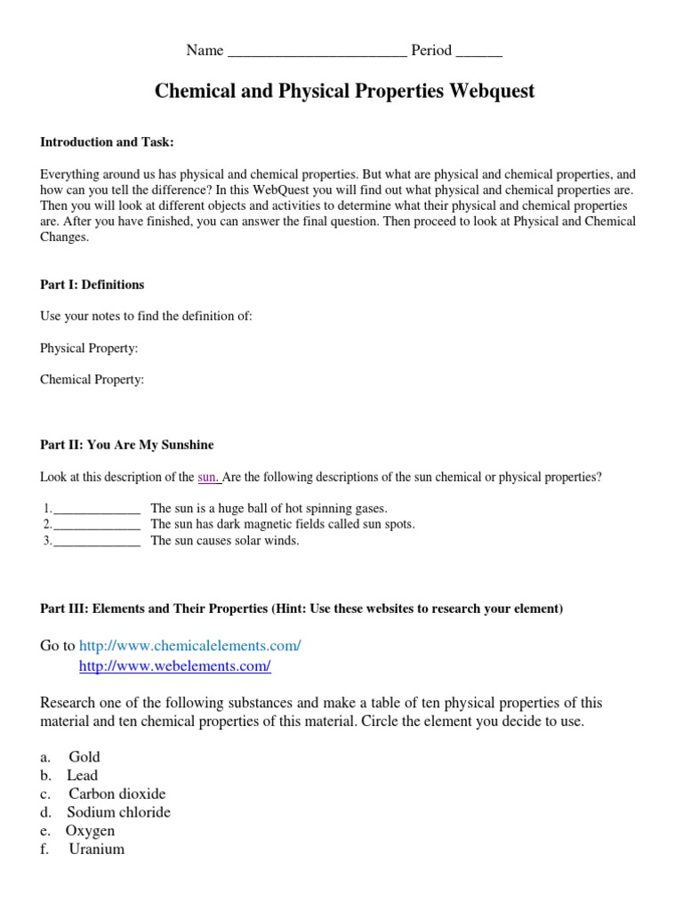 Physical-and-Chemical-Changes-Worksheet.doc - Course Hero View Homework Help - Physical-and-Chemical-Changes-Worksheet.doc from SCI 04 at K12. PHYSICAL AND CHEMICAL PROPERTIES AND CHANGES Name _ PHYSICAL PROPERTY PROPERTY 1. observed with senses 2.