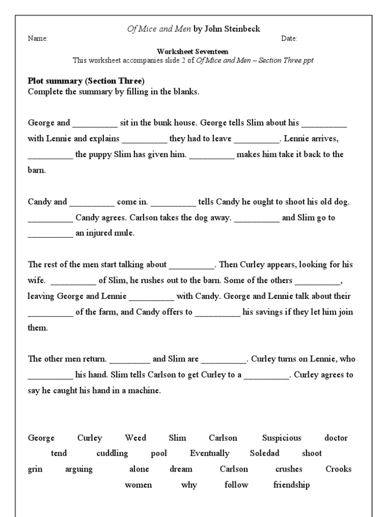 Of mice and men worksheet