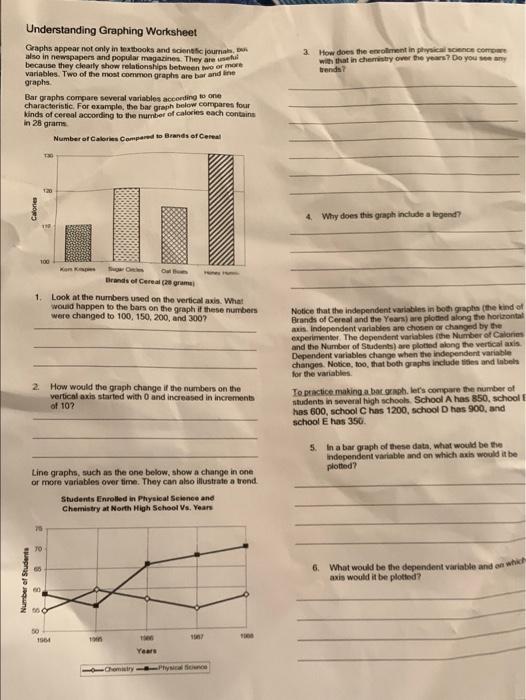 PDF Graphing Review Save this for the entire year! - Liberty Union High ... Graphing Review Introduction Line graphs compare two variables. Each variable is plotted along an axis. A line graph has a vertical axis and a horizontal axis. For example, if you wanted to graph the height of a ball after you have thrown it, you would put time along the horizontal, or x-axis, and height along the vertical, or y-axis. Quiz & Worksheet - Reading Scientific Graphs & Charts - Study.com This quiz and worksheet combo can help you practice the following skills: Making connections - use understanding of different charts to identify them given a description. Information recall ... Answers To Study And Worksheet Of Hours Science Intro Graphing Of Graph ... If you are using graph paper, let 1 unit on the graph paper equal 1 unit of the values you are graphing Chapter 3 Practice Read and create line graphs with these worksheets Math Exercises, Math worksheets, Math printables for 5th and 6th graders, Decimals, fractions, multiplication, algebra and more Bar Graphs Bar Graphs. Solved Graph Worksheet Graphing & Intro to Science Name ... - Chegg Biology questions and answers. Graph Worksheet Graphing & Intro to Science Name: genes that type: aa A. Graph the following Information in a BAR graph. Label and number the x and y-axis appropriately. Month | # of deer Sept 38 32 26 20 15 12 Nov Feb 1.