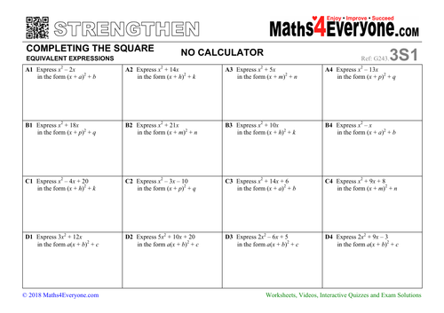 Completing the Square - GCSE Maths - Steps, Examples & Worksheet Completing The Square. Here is everything you need to know about completing the square for GCSE maths (Edexcel, AQA and OCR). You’ll learn how to recognise a perfect square, complete the square on algebraic expressions, and tackle more difficult problems with the coefficient of x 2 ≠ 1.. You will also learn how to solve quadratic equations by completing the square, and how …