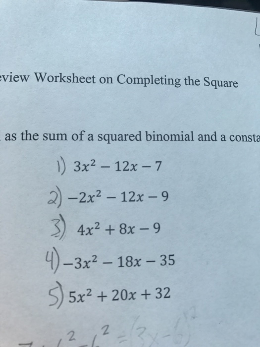 Completing the square worksheet 1 answers